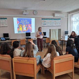 Em cada sessão e a partir da leitura de parte da história, 4 dos alunos de cada turma apresentaram-se como candidatos a Presidente em representação das personagens, fizeram a sua campanha eleitoral e foram a Eleições.