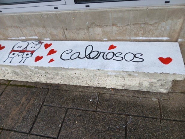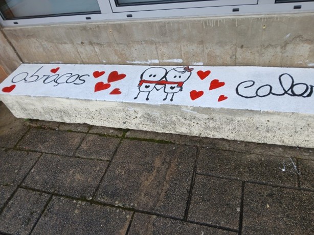 Colorindo o Amor, atividade os alunos do 8ºano, convida a celebrar o Dia de São Valentim, pintando os bancos exteriores da Escola, com frases e desenhos que expressem amor e amizade.