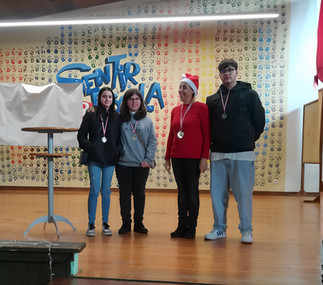 No último dia de aulas (16 de dezembro), durante o almoço de Natal no polivalente da escola Secundária, procedeu-se à entrega das medalhas do Corta Mato Escolar, realizado no dia 2 de novembro, pela Exma. Diretora do Agrupamento, coordenador do Desporto Escolar, professores do grupo de Educação Física e representantes da associação de estudantes a quem desde já agradecemos a colaboração na realização das atividades de final de período, nomeadamente os torneios escolares.