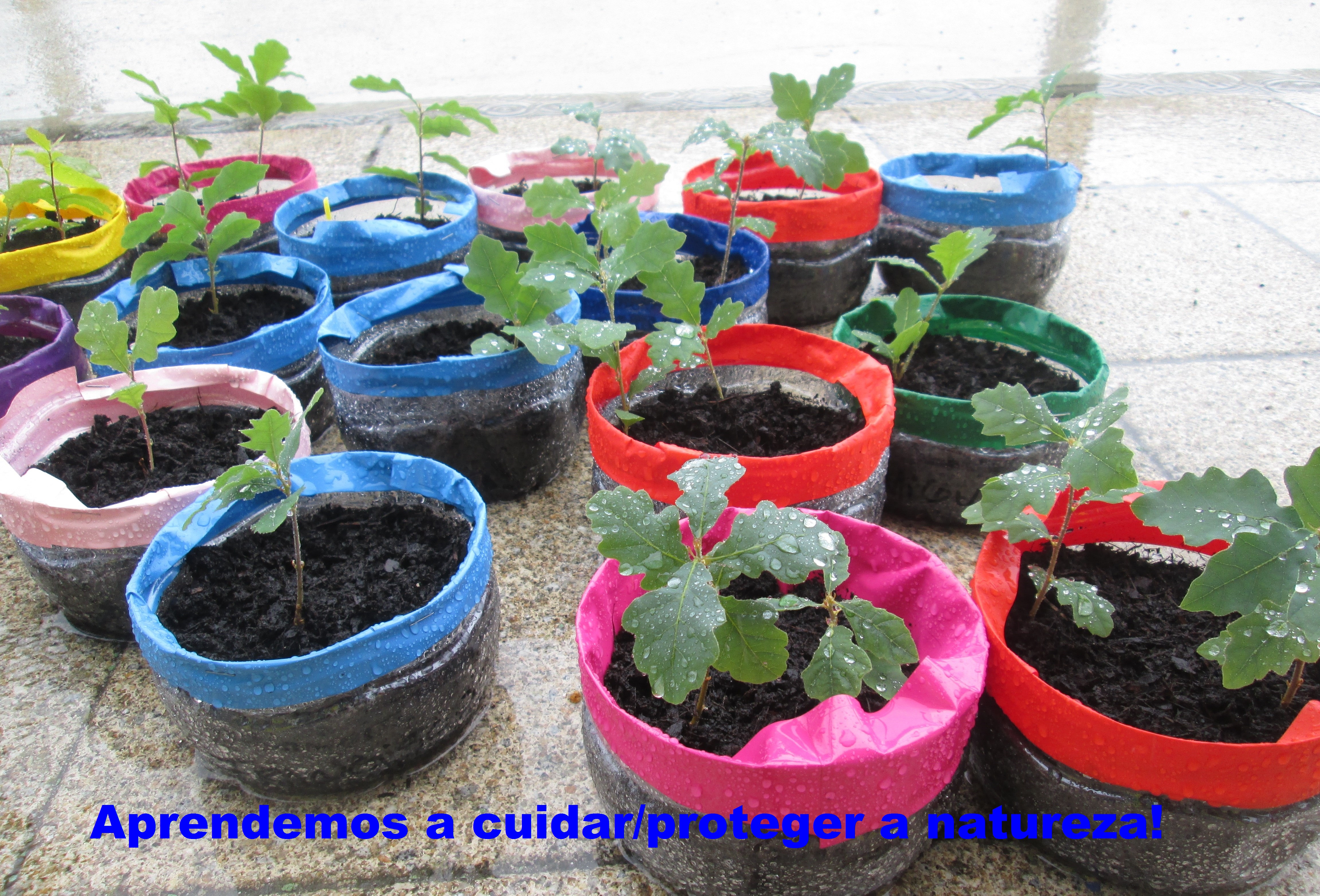 Em outubro de 2017, as crianças da turma JI-3 anos do Centro Escolar de Valpaços ficaram bastante sensibilizadas com a vaga de incêndios no nosso país. Relatavam as imagens que viam nos meios de comunicação social: “as árvores estão todas queimadinhas…”. Perante esta preocupação/interesse das crianças refletimos juntos como poderíamos ajudar/proteger a natureza? Após alguma pesquisa “descobrimos” os carvalhos tão característicos da nossa flora (planta autóctone). Decidimos semear bolotas em vasos improvisados (reutilização de garrafões de plástico) e esperar…regamos/cuidamos e observamos rebentos que se transformaram em pequenas plantas robustas e verdejantes.