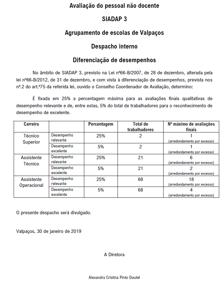A Diretora do Agrupamento de Escolas de Valpaços congratula o sucesso alcançado pelos alunos.