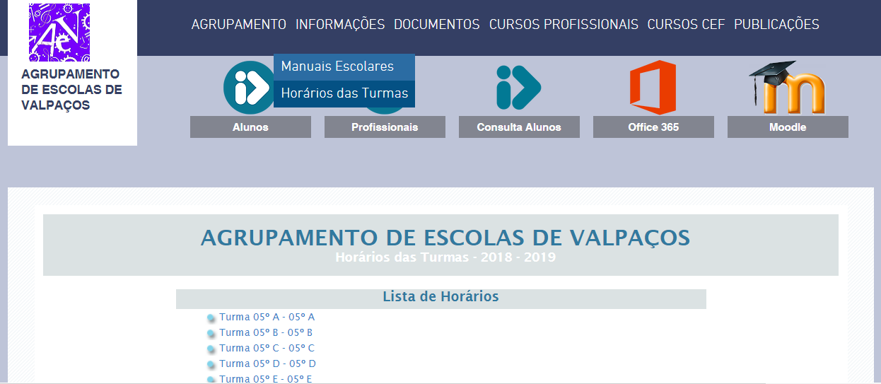 no Menu "INFORMAÇÕES" do Website do Agrupamento, estão disponíveis para consulta os horários das turmas para o ano letivo 2018/2019.