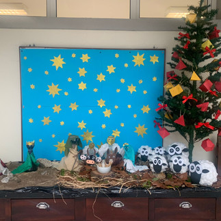 Foi com muito entusiasmo e dedicação que, no âmbito das disciplinas de Biologia, Higiene, Física e Química e Matemática, os alunos dos Cursos Profissionais de Técnico Auxiliar de Saúde e de Técnico de Informática - Sistemas construíram um “Presépio Científico “ recorrendo a material de laboratório e à reutilização de materiais. A árvore de Natal foi enfeitada com sólidos geométricos.